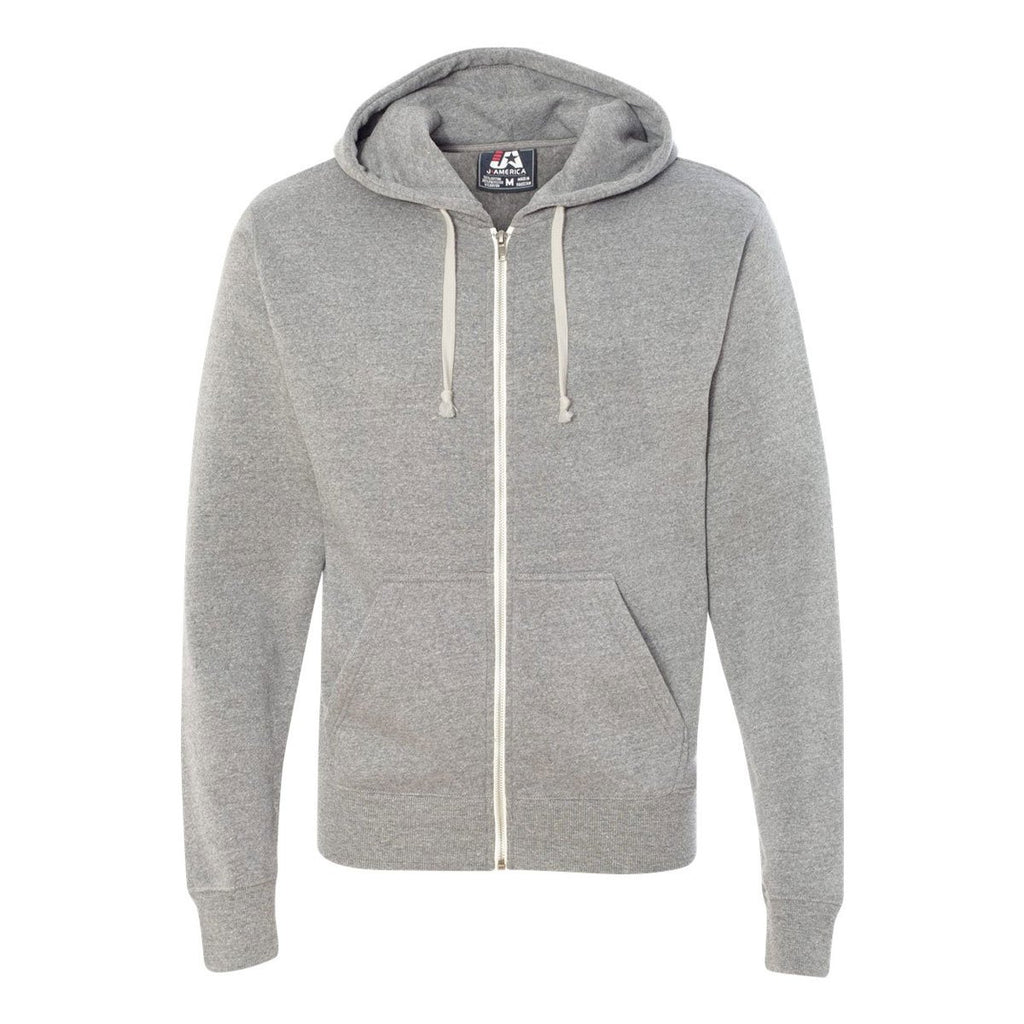 J. America Men's Grey Triblend Triblend Hooded Full-Zip Sweatshirt