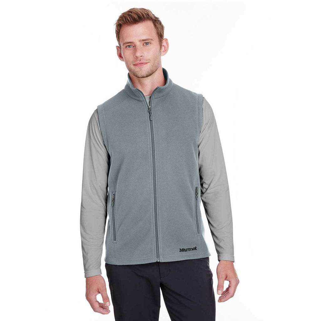 Create your own custom look with a Marmot Men's Steel Onyx Rocklin Fleece Vest. The perfect choice for layering with a tee or long sleeve shirt, this polyester fleece vest will keep your core warm while you workout or enjoy a game of basketball. Add a company logo to use these as part of company uniforms or a corporate logo to use as employee gifts that also provide advertising. Featuring flat lock construction and zippered hand pockets for small essential items, this embroidered vest is a must have for nearly every occasion. Place an order today to keep these on hand for end of the year gifts that everyone will love.Corresponding Women's Style: Marmot Women's Steel Onyx Rocklin Fleece Vest