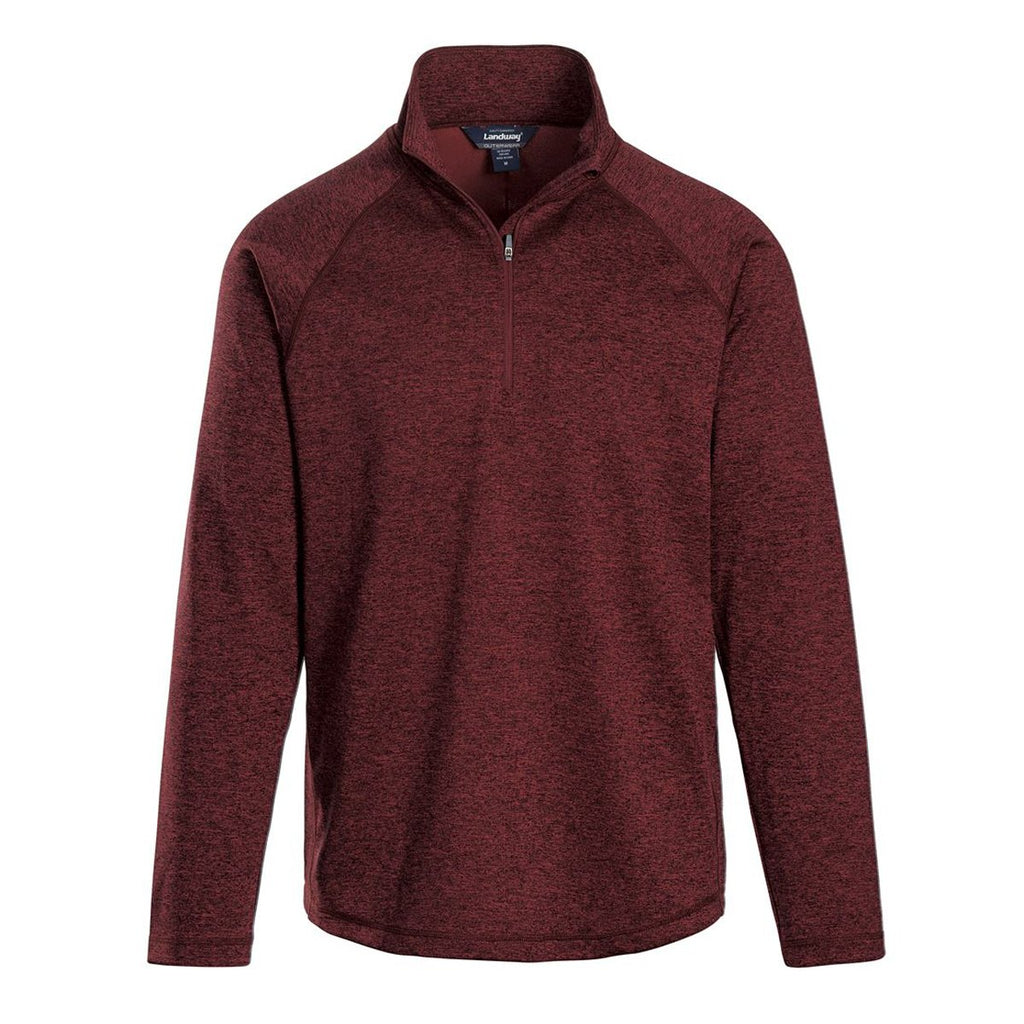The company logo Landway Men's Heather Deep Red Alpha Heathered 1/4-Zip Pullover is a stylish men's top which is available in four fashionable colors. With features such as 100% yarn-dyed polyester melange fabric, active dry moisture wicking capabilities, raglan sleeves, flatlock stitching, and four-way stretch fabric, this shirt is a must-have for any man's wardrobe. With your embroidery company logo added to the shirt, you have an ideal gift to distribute at trade shows, hand out to potential employees at recruiting events or award to the first, second and third place winners at upcoming golf events.Corresponding Women's Style: Landway Women's Heather Deep Red Alpha Heathered 1/4-Zip Pullover