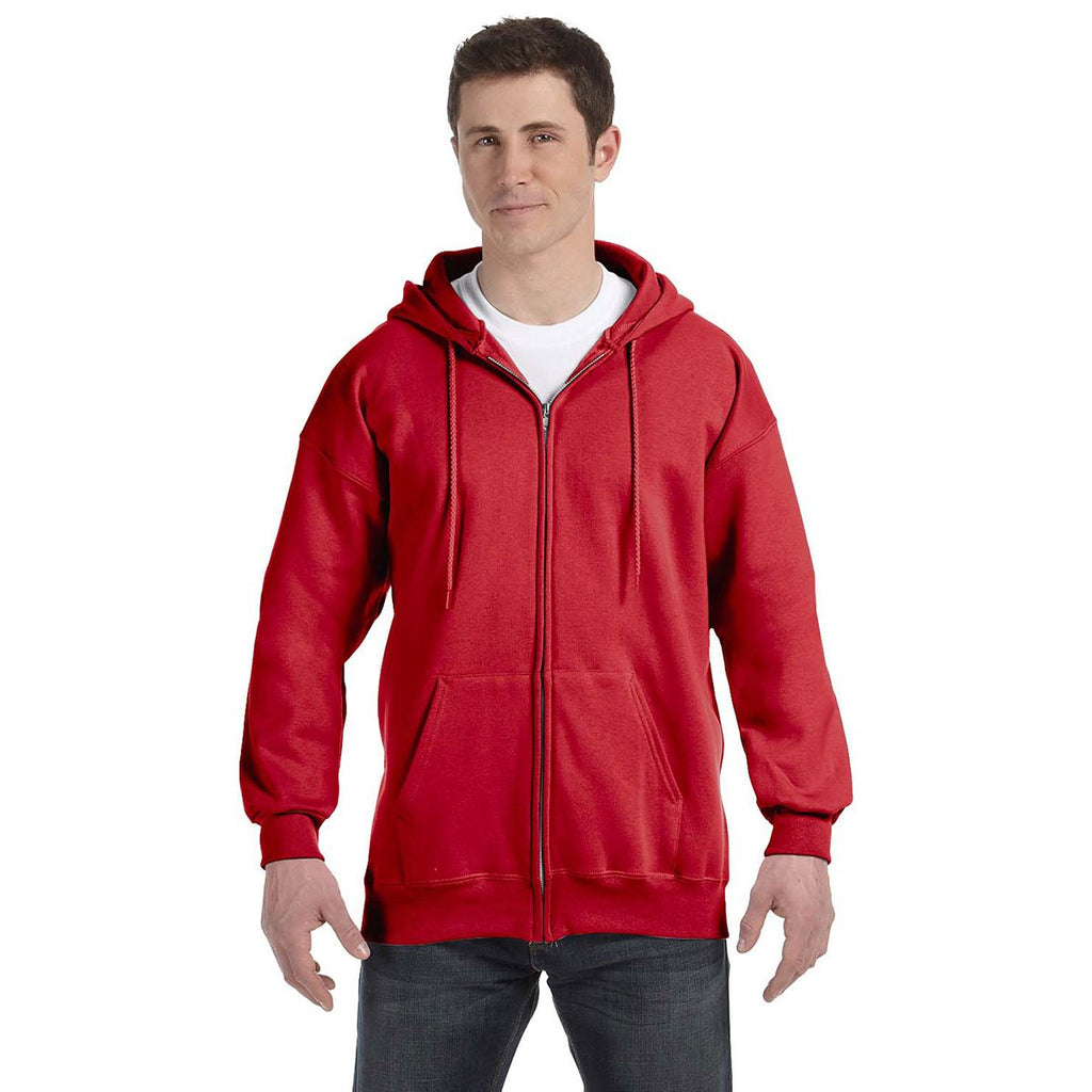 Hanes Men's Deep Red 9.7 oz. Ultimate Cotton 90/10 Full-Zip Hood