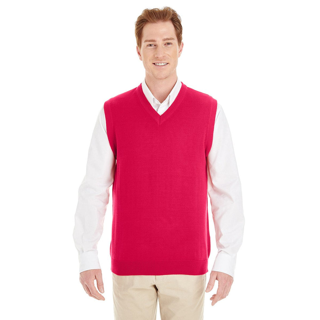 Harriton Men's Red Pilbloc V-Neck Sweater Vest