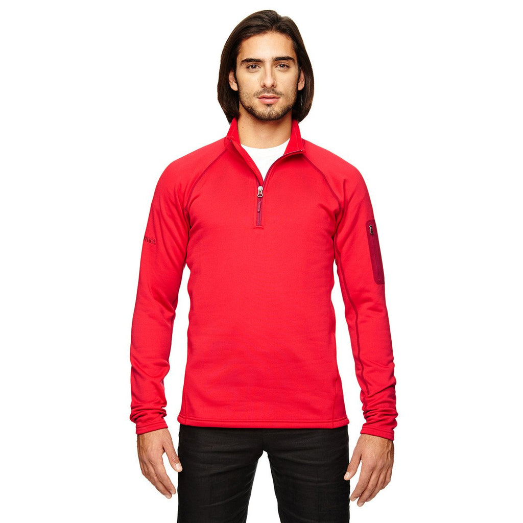 What do you want when it's cold outside besides a cup of hot cocoa? If you're like most people, you want something simple: an article of clothing that's comfortable, easy to put on, snug and warm, yet oddly breathable so that you don't get too warm. Essentially, you're looking for this Marmot Men's Team Red Stretch Fleece Half-Zip. And why not? It features a stretch fleece that keeps you snug and warm without ever feeling stifling. And the 93-7 polyester, elastane jersey fabric is enough to keep it protected from the elements and lightweight enough for slightly warmer days. Add your own company or brand logo to the front of this half-zip to have an item that represents your style in more ways than one.Corresponding Women's Style:Marmot Women's Team Red Stretch Fleece Half-Zip
