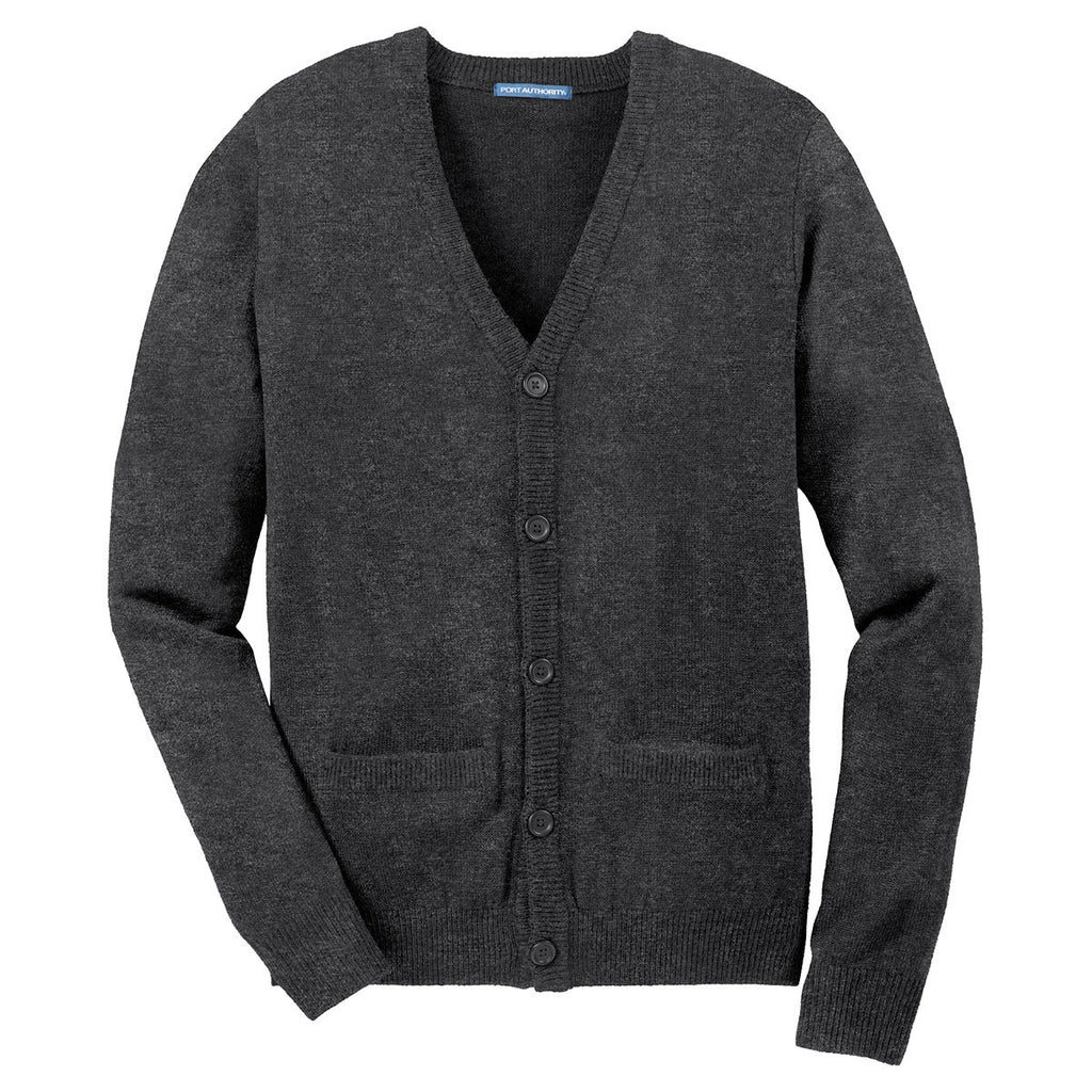Corresponding Women's Style:Port Authority Women's Charcoal Value Jewel-Neck Cardigan Sweater