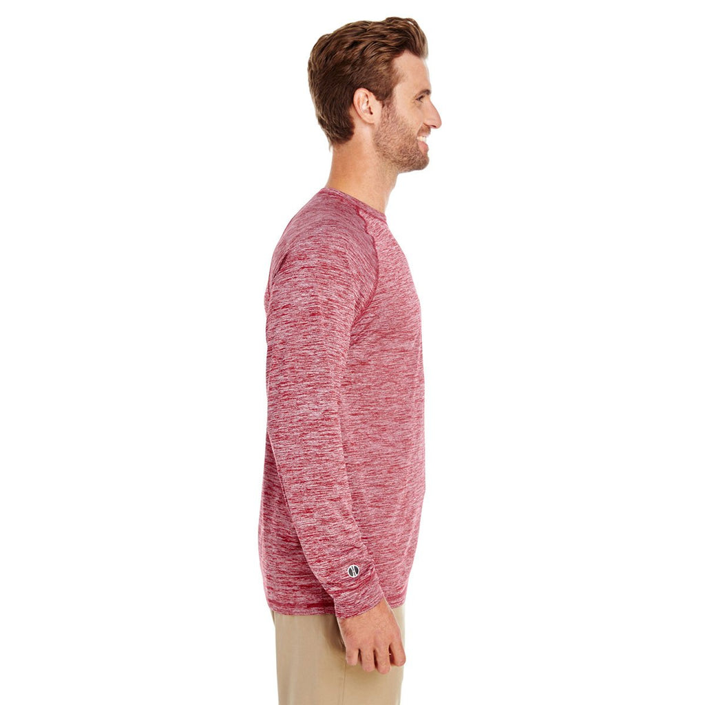 Electrify your professional peers by wearing the decorated Holloway Men's Cardinal Heather Electrify 2.0 Long-Sleeve at the next big corporate event. The versatile long sleeve shirt works as well during a business seminar, as it does during the informal dinner that concludes your busy day. Attach a custom logo on the large imprint area to establish a strong presence for your company. Raglan sleeves improve arm movement flexibility to give you the go to corporate apparel for participating in recreational activities. The visually stunning two-color heather pattern will grab the fashion attention of everyone around you.Highlights