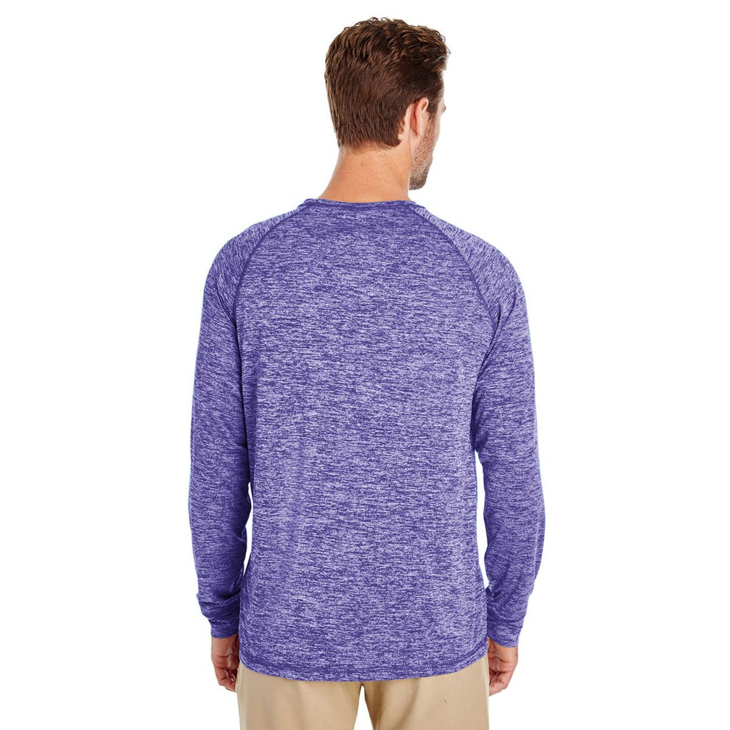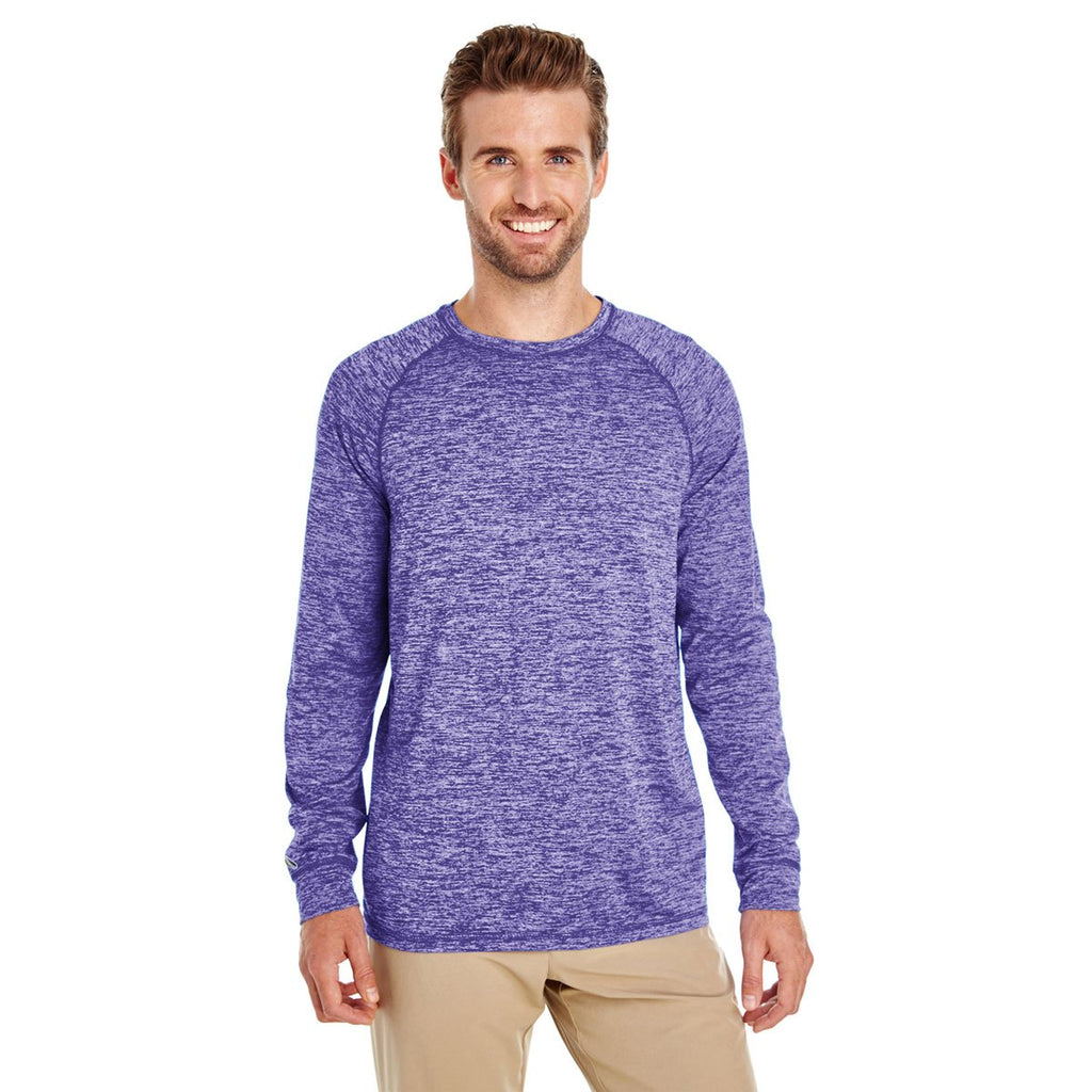 Electrify your professional peers by wearing the decorated Holloway Men's Purple Heather Electrify 2.0 Long-Sleeve at the next big corporate event. The versatile long sleeve shirt works as well during a business seminar, as it does during the informal dinner that concludes your busy day. Attach a custom logo on the large imprint area to establish a strong presence for your company. Raglan sleeves improve arm movement flexibility to give you the go to corporate apparel for participating in recreational activities. The visually stunning two-color heather pattern will grab the fashion attention of everyone around you.Highlights
