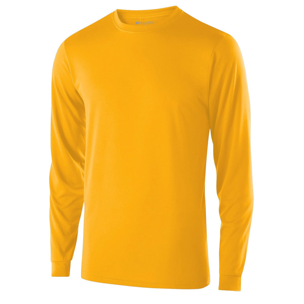 The collar and inserts for the embroidered Holloway Men's Light Gold Long Sleeve Gauge Shirt feature a polyester knit design in a sleek, two-color pattern. Cotton hand polyester knit creates a peach-like feel for the multi-purpose shirt. The super soft feel ensures you remain as fresh at the end of the day, as you did when you put on the shirt in the morning. Incredible softness does not mean the shirt is soft in performance. One-hundred percent reliable polyester resists rips and tears to deliver high performance company apparel for work and play. Add your corporate logo on the large imprint area and watch awareness of your company skyrocket.Highlights