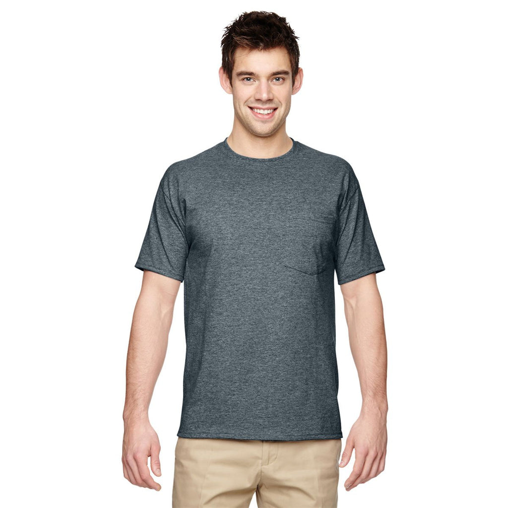 Jerzees Men's Black Heather 5.6 Oz Dri-Power Active Pocket T-Shirt