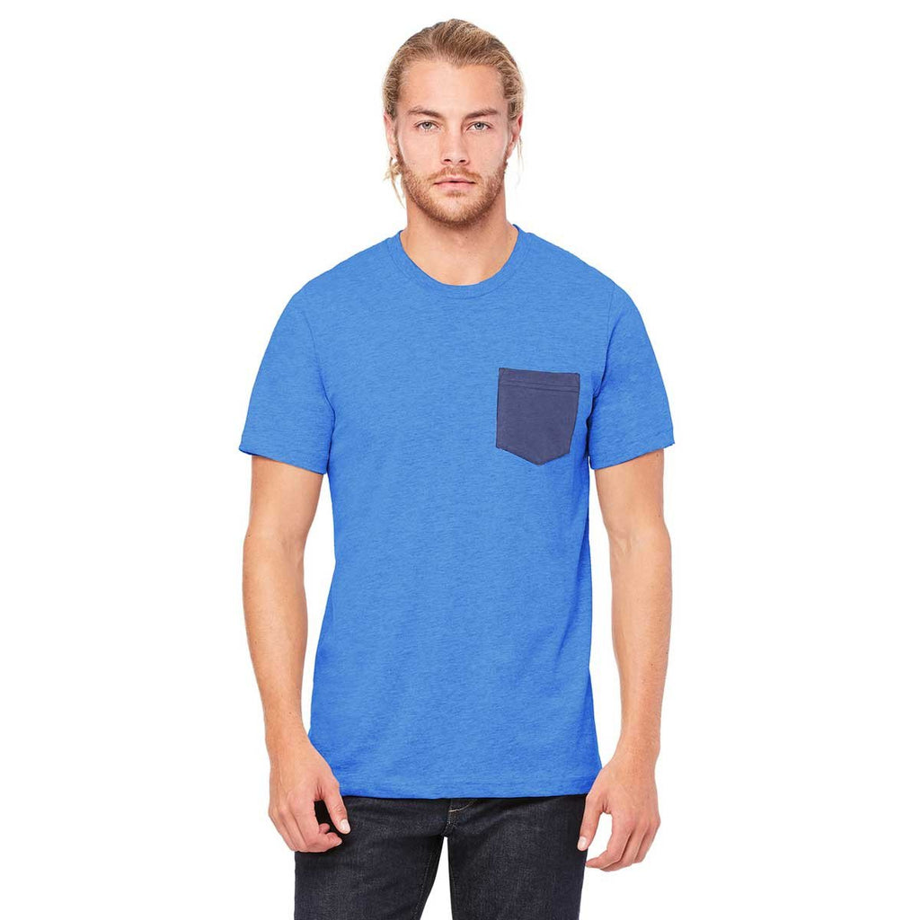 Bella + Canvas Men's Heather True Royal/Navy Jersey Short-Sleeve Pocket T-Shirt