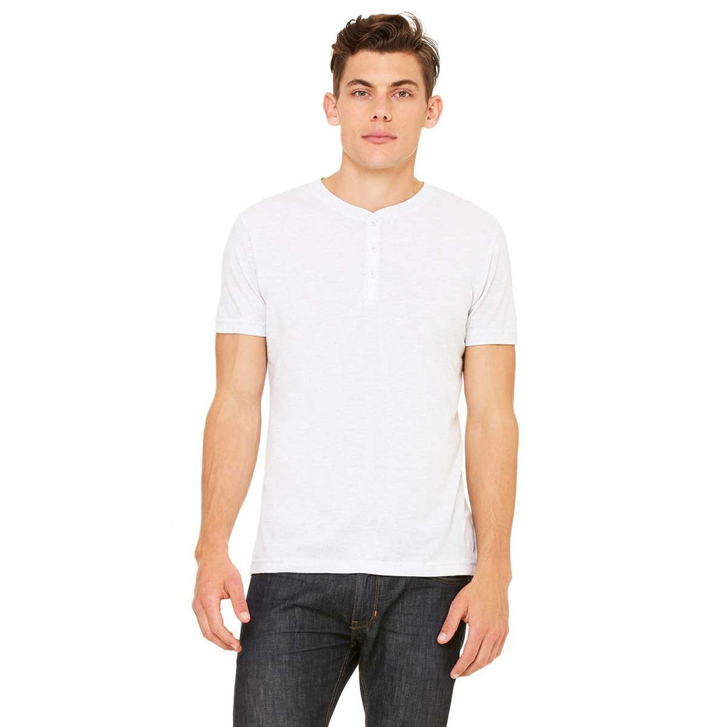 Bella + Canvas Men's White Fleck Triblend Short-Sleeve Henley