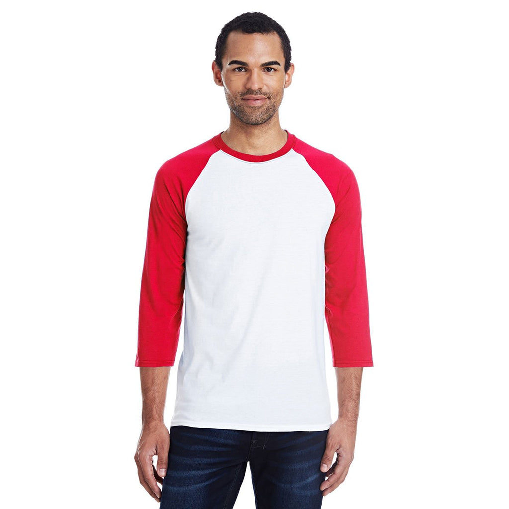 Hanes Men's White/Deep Red 4.5 oz. 60/40 Ringspun Cotton/Polyester X-Temp Baseball T-Shirt