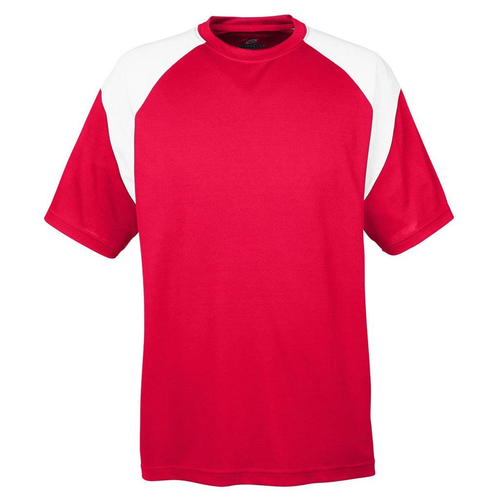 UltraClub Men's Red/White Cool & Dry Sport Colorblock T-Shirt
