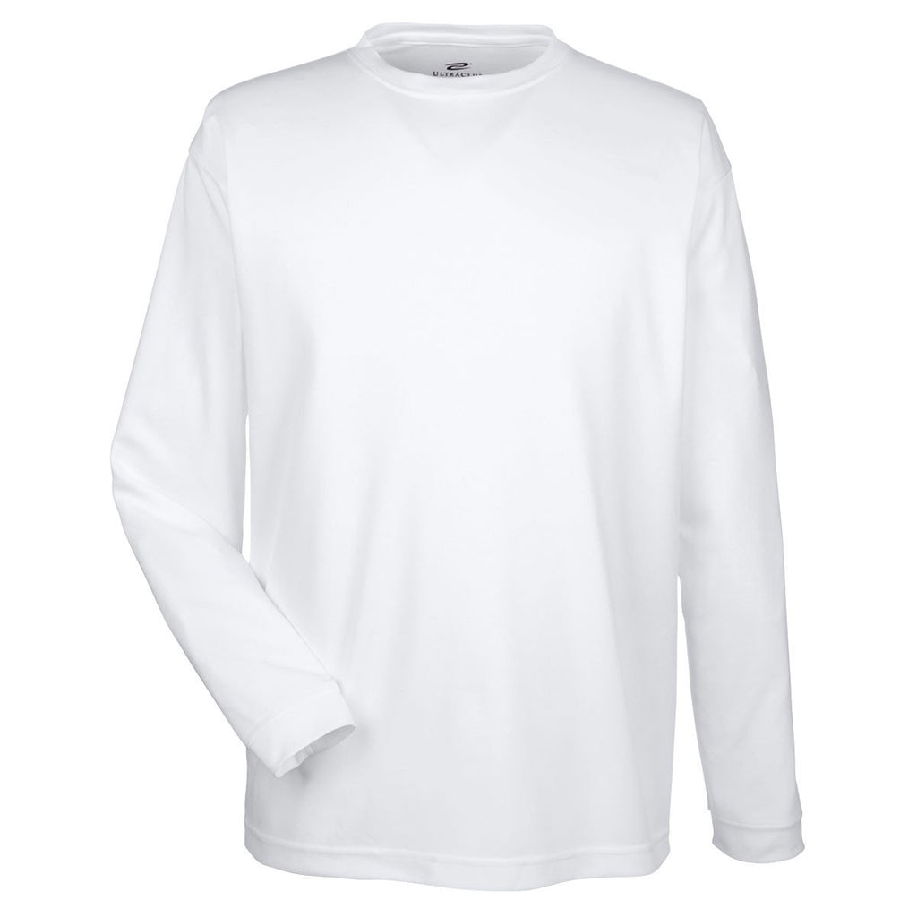 UltraClub Men's White Cool & Dry Sport Long-Sleeve T-Shirt