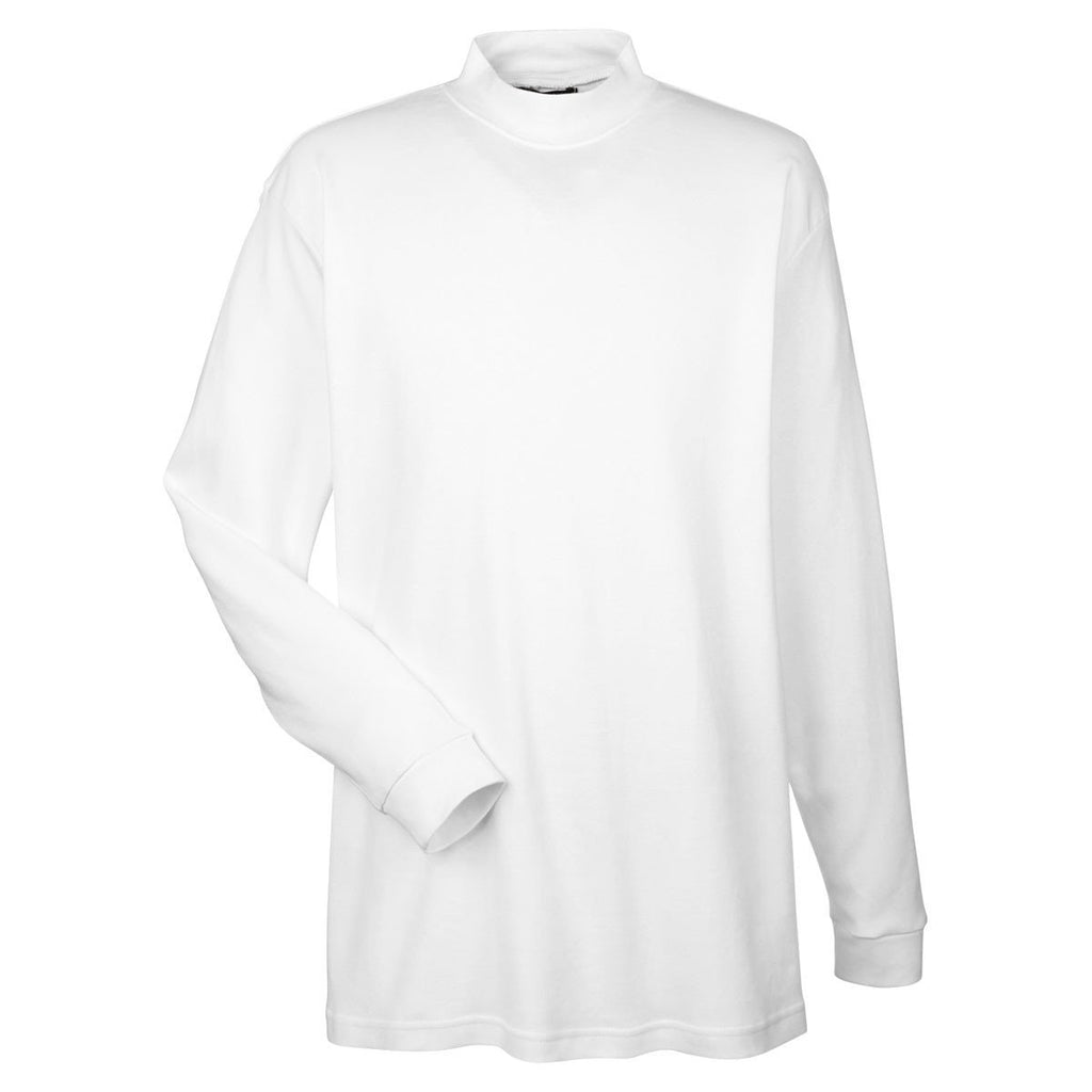UltraClub Men's White Egyptian Interlock Long-Sleeve Mock Turtleneck