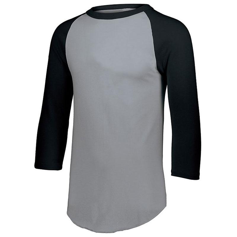 The custom Augusta Sportswear Men's Athletic Heather/Black 3/4-Sleeve Baseball Jersey comes in 16 different colors, ideal for finding the perfect color tone to complement your company logo. This 3/4-length sleeve shirt is made of a comfortable 50/50 cotton/polyester jersey knit fabric and consists of enticing additional features, such as a contrast color rib knit collar, tear away label, contrast color sleeves, double-needle hem sleeves, fishtail bottom, and more. Add your screen print company logo and purchase this corporate apparel for your company softball team or as a gift to employees for a job well done at the office.