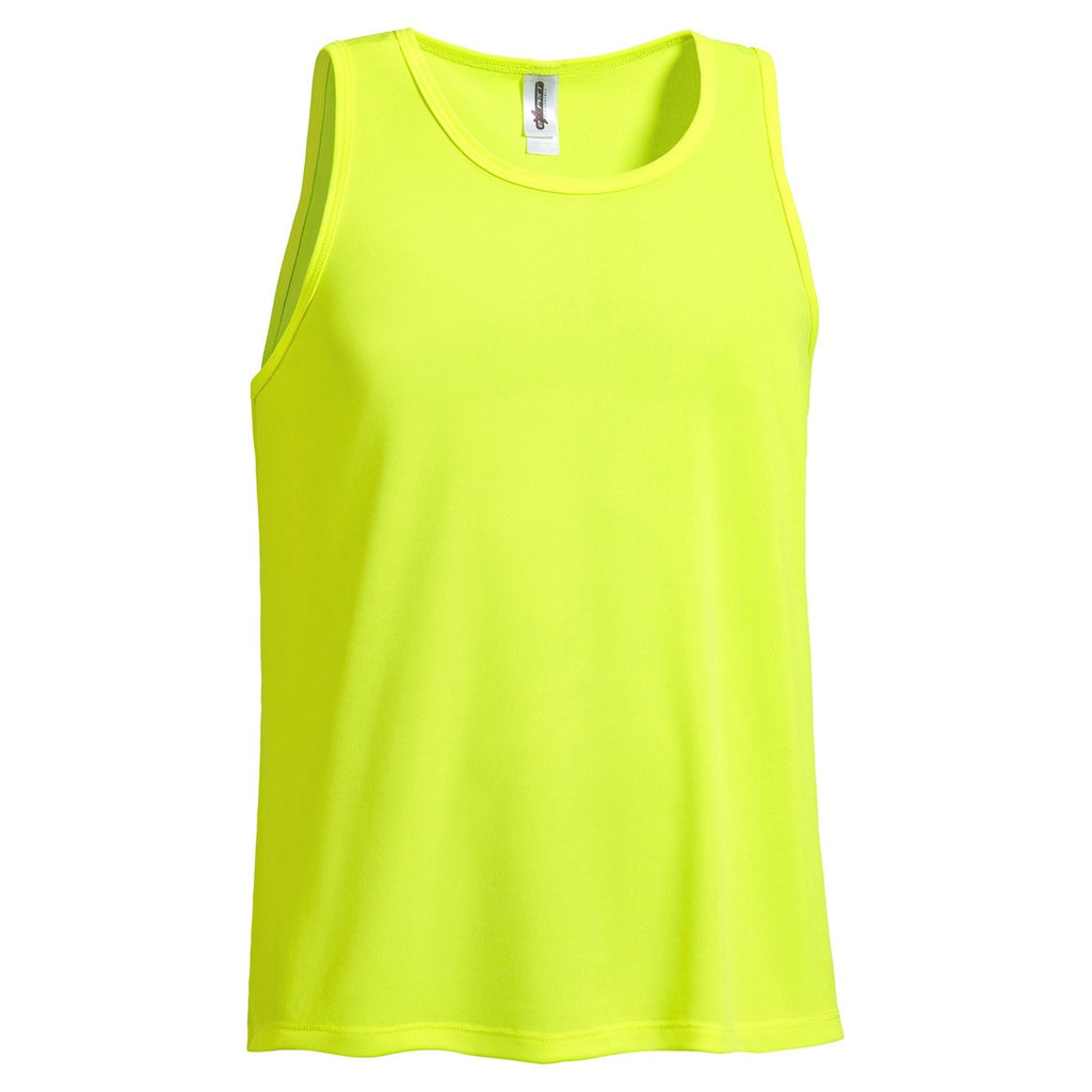 Move freely and comfortably in any workout program with Expert Men's Safety Yellow Workout Tech tank top featuring breathable mesh for letting out excess heat for cool comfort while working out. Offset side seams minimize the chances of chafing and irritation while athletic fit ensures freedom of movement during workout regimen. Crafted from 100% microfiber polyester px maX. The fabric is BodyFreshe anti-bacterial technology and wicks sweat quickly. Flaunt your brand pride with this men's performance tank top! Our advanced customization service lets you customize this top with ultra-fine quality logo imprint of your company.Highlights