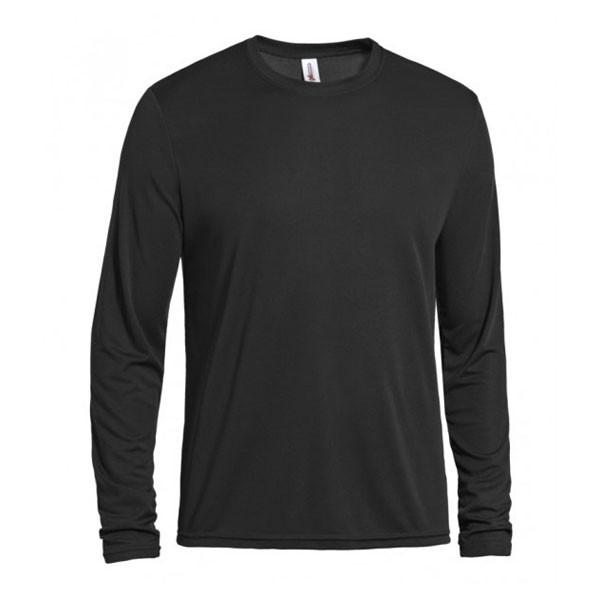 This Expert Men's Black Long Sleeve Tee is made from 100% microfiber polyester pk maX with a wicking finish that swipes sweat from your skin and treated with anti-allergic BodyFreshe technology. The shirt has a relaxed fit and conforms to every movement of your body. This simple long-sleeve crew neck is great not just for an active lifestyle but it also works for all summertime activities. If you're after an ergonomic version of everyday basic T, you'll love this Expert's Long Sleeve Tee. It is customizable with a logo or message for uses such as branded merchandise, corporate giveaway or for event marketing/promotion.Highlights