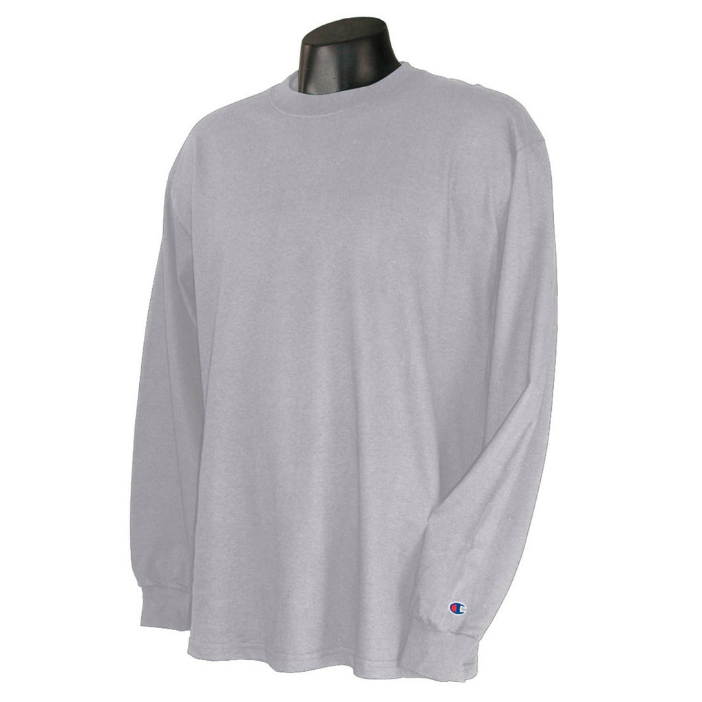 Champion Men's 5.2 oz Light Grey L/S Tagless T-Shirt