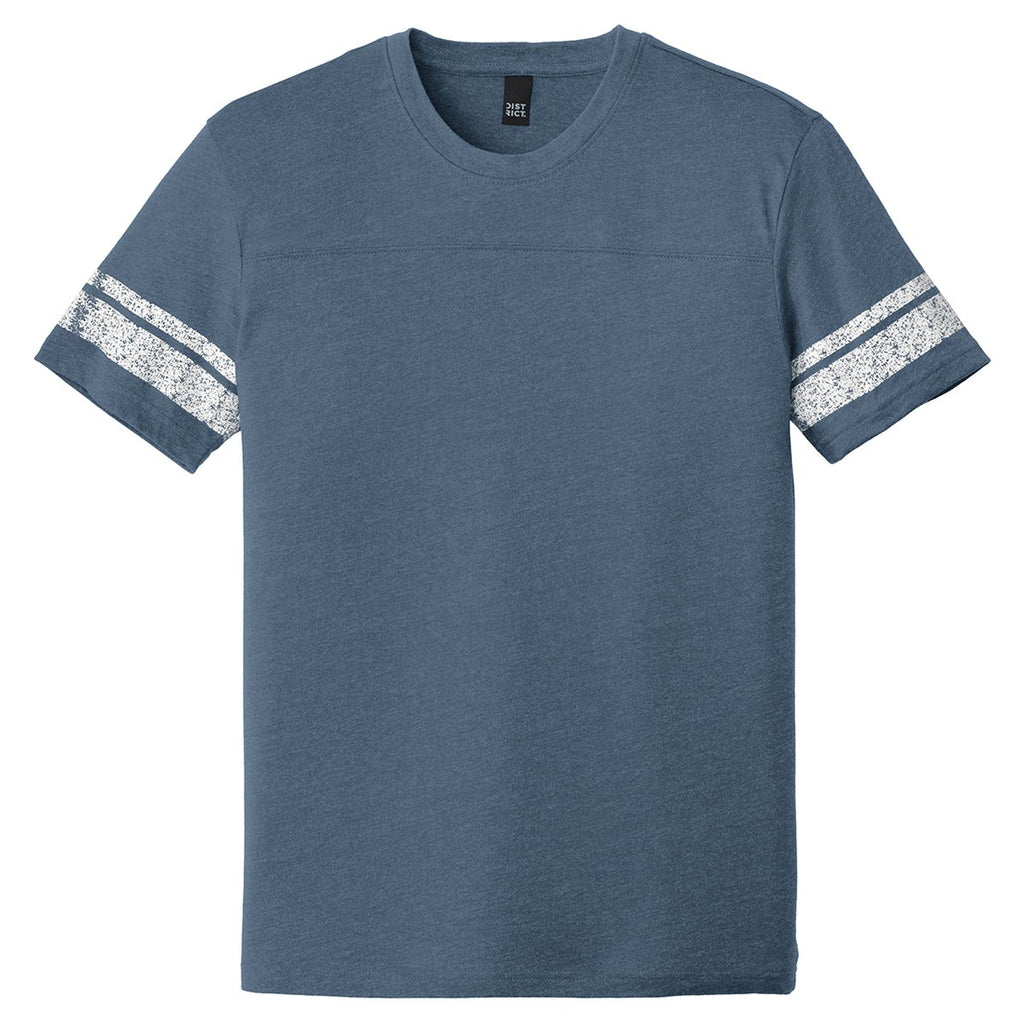 Distressed printed stripes on the sleeves of the custom logoed District Men's Heathered True Navy/White Game Tee will attract the attention of everyone you meet at civic events. Make the buzz pay off for your brand by attaching your company logo on the large imprint area. With a logo, you benefit from a cost effective way to advertise your products and services. The old school look of the tee works well at casual corporate social events. Ring spun cotton combines with highly durable polyester to give you the perfect corporate apparel for the male members of your team.Corresponding Men's Style: District Made Women's Heathered True Navy/White Scorecard Tee