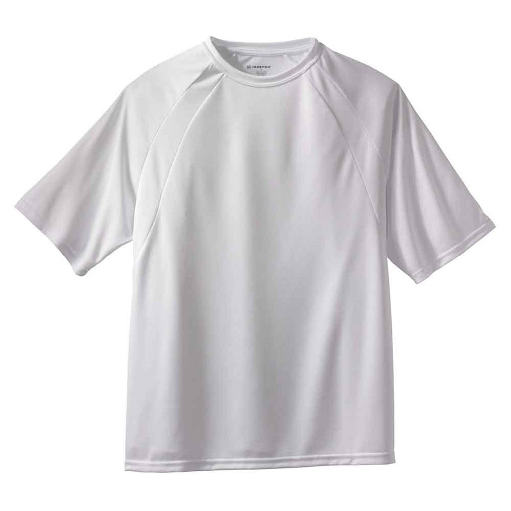 Contrast color blocking on both shoulders creates a stunning design for the Harriton Men's White/White 4.2 oz. Athletic Sport Colorblock T-Shirt. Antimicrobial properties ensure you look and feel as fresh after the big game as you did before you took the field. The 100% polyester shirt quickly wicks away moisture to keep your skin cool whenever the going gets tough. Double-needle stitching on the sleeves increase the durability of the sport t-shirt. Side seam stitches present a unique design element that others will notice. Attach your company logo for expanding the presence of your brand in the community.Highlights