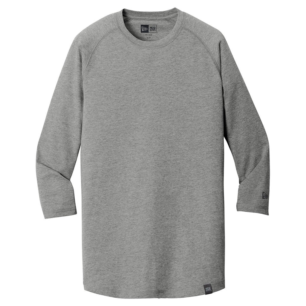 For a major league look, put on the rugged New Era Men's Shadow Grey Heather Heritage Blend 3/4 Sleeve Baseball Raglan Tee. When you slide safe into second base, the 40% polyester fabric resists rips and tears to give you several league seasons of high performance use. Back and shoulder yoke color blocking delivers a visually attractive appearance. Raglan sleeves and a shoulder darting shape help increase mobility for both arms. The extra mobility comes in handy when you need to let it rip at the plate. Add a custom logo on the large imprint area for expanding your company's presence at civic and professional networking events.Corresponding Women's Style: New Era Women's Shadow Grey Heather Heritage Blend 3/4 Sleeve Baseball Raglan Tee