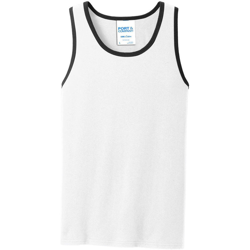Port & Company Men's White/Jet Black Core Cotton Tank Top