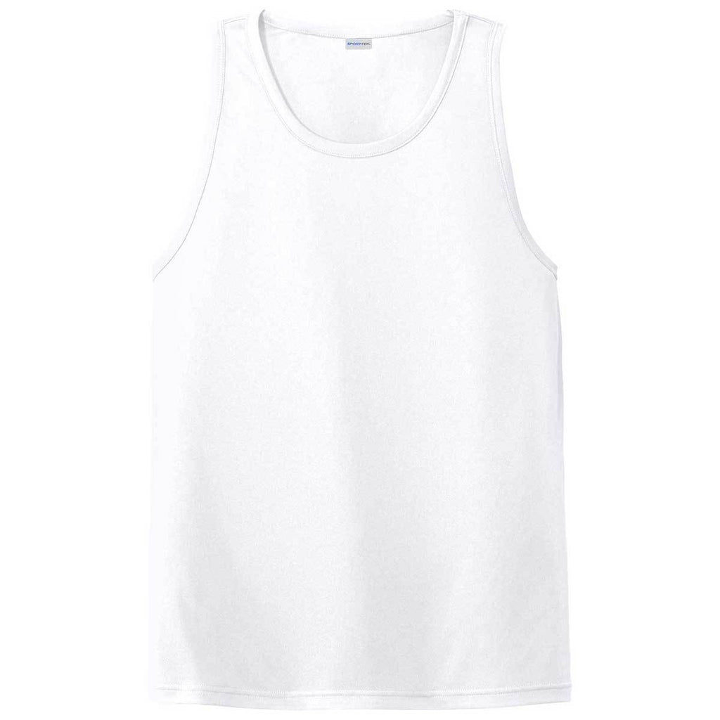 Hit the gym in a custom logo Sport-Tek Men's White PosiCharge Competitor Tank in a variety of bold and bright colors. The 100% polyester interlock is breathable and comfortable whether playing a pick-up game of basketball or participating in team events. This moisture wicking, value priced tank is perfect to serve as a jersey with a company or corporate logo created from heat transfer. Binding at the neck and armholes keep it in place as you play your hardest. PosiCharge technology also keeps the logo from fading over time to keep you and your teammates looking their best.Corresponding Women's Style: Sport-Tek Women's White PosiCharge Competitor Racerback Tank