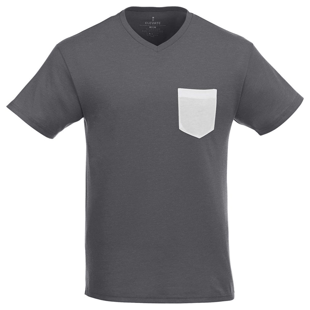 If there is one true star that shines all the year when it comes to season-spanning fashion, it is the T-shirt. And, a custom-logoed shirt has always been a great way to build brand recognition or to promote sports events, business, services, cause, or organization. Consider the Elevate Men's Heather Dark Charcoal/White Monroe Short Sleeve Pocket Tee for your upcoming promotional giveaway spree. A contrast chest pocket lends a casual-chic storage place to this on-trend t-shirt. Highlights include v-neck rib knit collar and tagless heat transfer label. Crafted from a lightweight cotton-blend fabric. Gain more exposure and crowd when you give out this Men's Monroe Short-Sleeve Pocket Tee at your next event.Corresponding Women's Style: Elevate Women's Heather Dark Charcoal/White Monroe Short Sleeve Pocket Tee