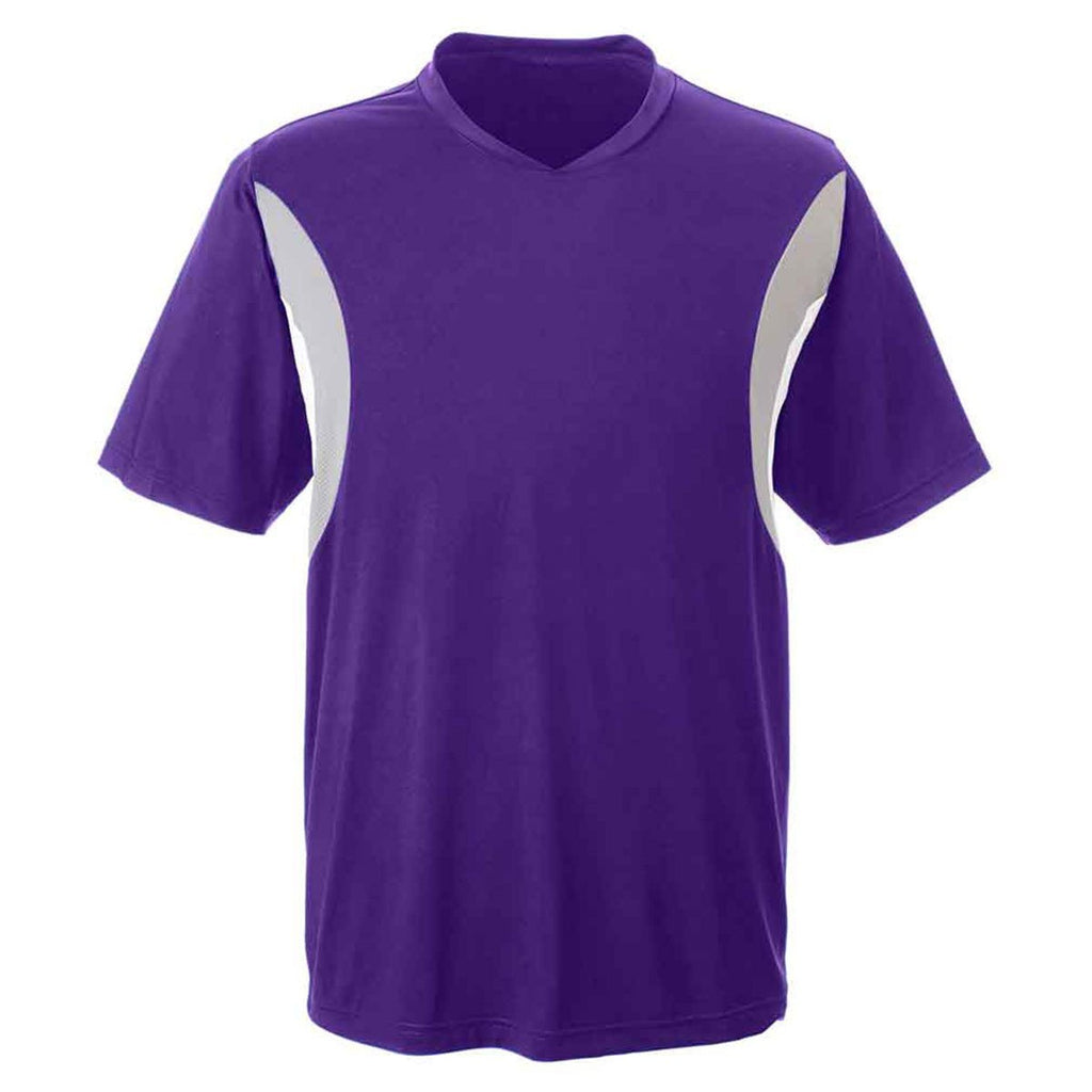 Whether you play in soccer league or just need a jersey to participate in a basketball pick-up game, the Team 365 Men's Sport Purple Short-Sleeve Athletic V-Neck Tournament Jersey is the right jersey for you. The mostly polyester jersey includes enough spandex to give you the movement flexibility you need to out maneuver the competition. Cationic dyes produce a superior bright design that attracts the attention of everyone who attends the big game. Take advantage of the attention by adding a custom logo that potential customers remember. Moisture wicking technology quickly removes perspiration to cool the skin.Corresponding Women's Style: Team 365 Women's Sport Purple Short-Sleeve Athletic V-Neck Tournament Jersey