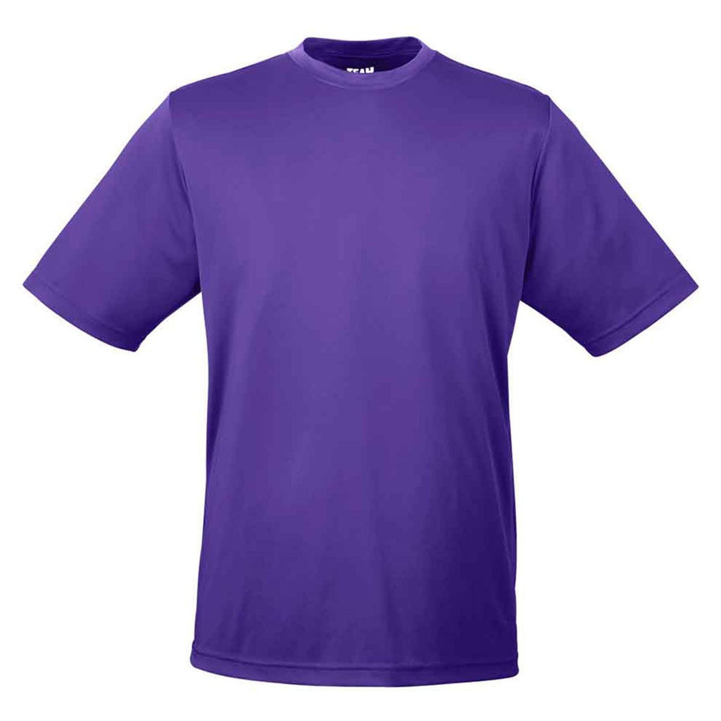 One-hundred percent polyester interlock makes the Team 365 Men's Sport Purple Zone Performance T-Shirt the go to shirt for serious athletes. Ultraviolet ray protection performance prevents skin damage caused by prolonged exposure to the sun. The snug, yet comfortable athletic fit gives you a leg up on the competition. Bright cationic dyes create a stunning visual appearance that leaves a long lasting impression on the other team. Add a custom logo to the large imprint area to bolster the image of your company at corporate sponsored sporting events. Logoed corporate apparel makes ideal gifts to reward the hard working members of your team.Corresponding Women's Style: Team 365 Women's Sport Purple Zone Performance T-Shirt