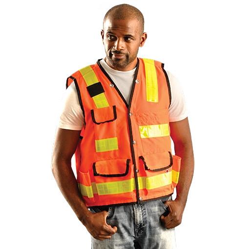 OccuNomix Men's Orange High Visibility Premium Solid Pro-Style Surveyor Vest