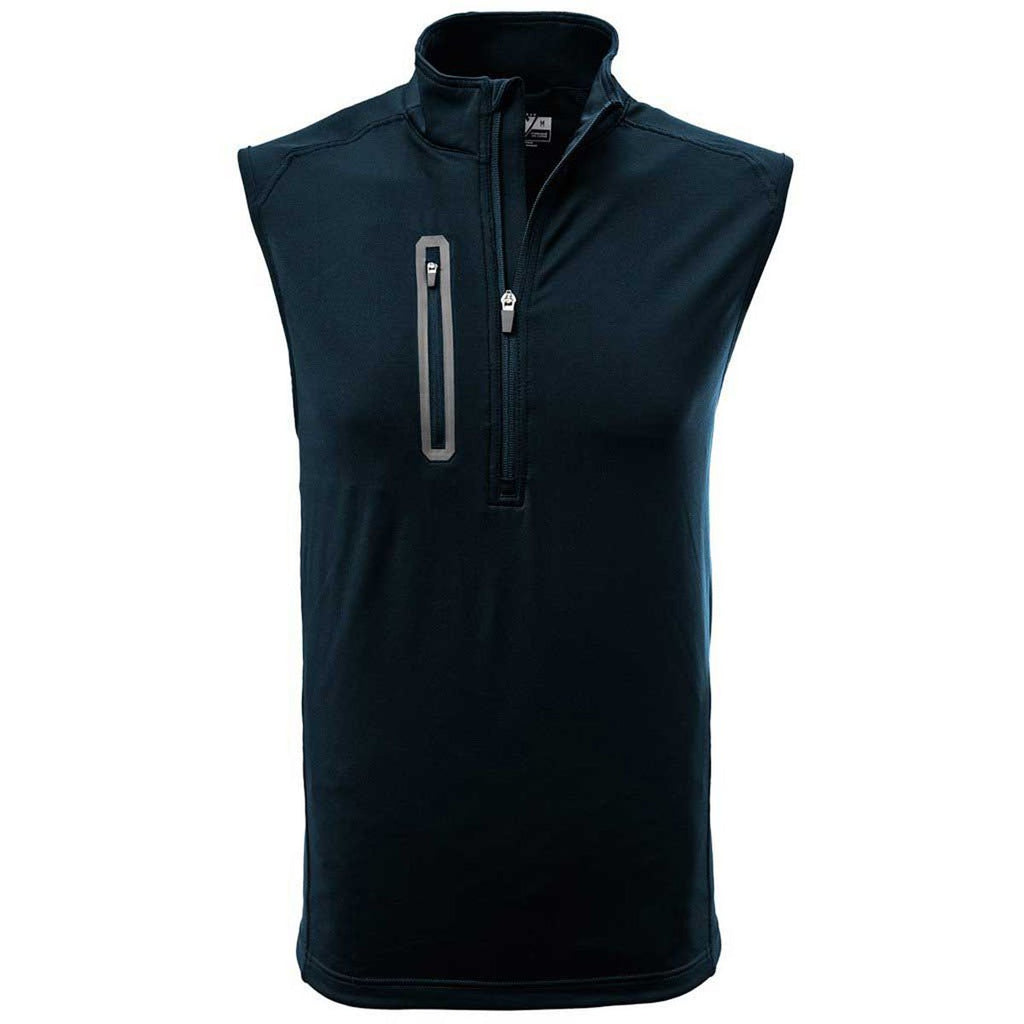 Switch up the usual uniforms by choosing the custom logoed Levelwear Men's Navy Progress Vest. The water repellent coating keeps you dry throughout an active day of fishing or running to and from the office building. Performance stretch gives you more mobility so you can be successful both at the office and outside casting a line into the water. Highly durable polyester resists the types of rips and tears that send other styles of vests to a donation bin. Give the anti pill vest to the hard working employees at your company. Just remember to add your company logo on the large imprint area to expand awareness of your brand in the community.Highlights