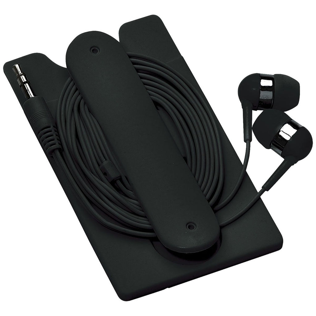 Bullet Black Silicone Card Wallet and Wired Earbuds