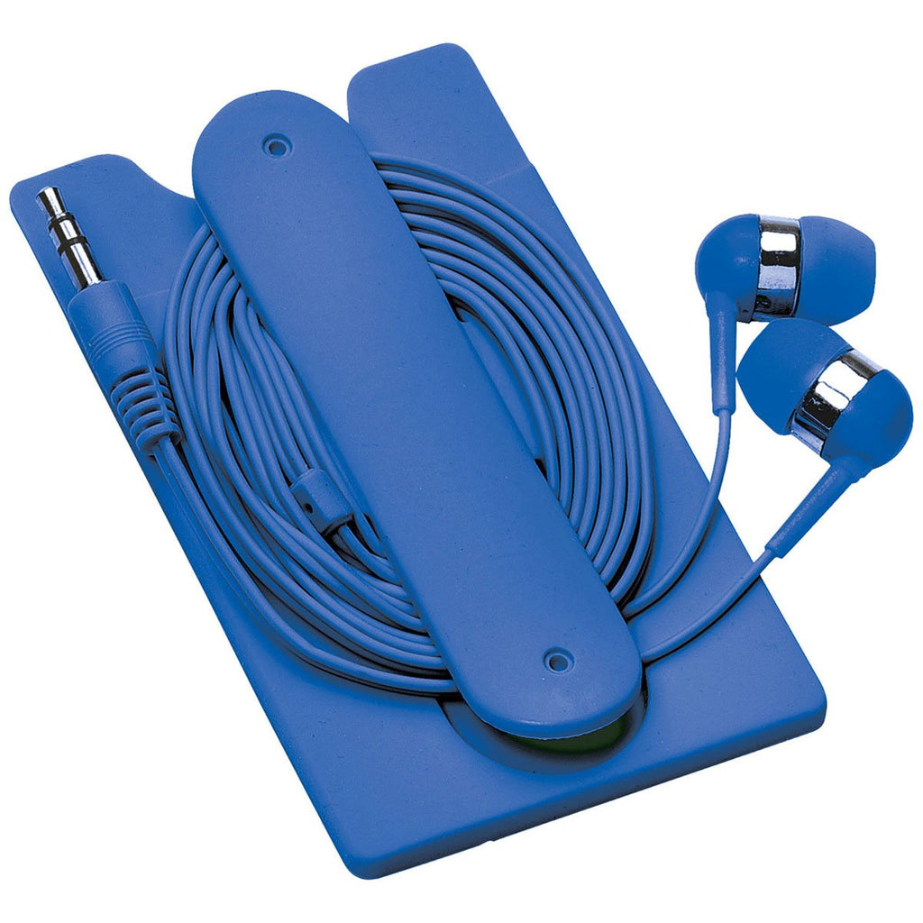 Bullet Royal Blue Silicone Card Wallet and Wired Earbuds