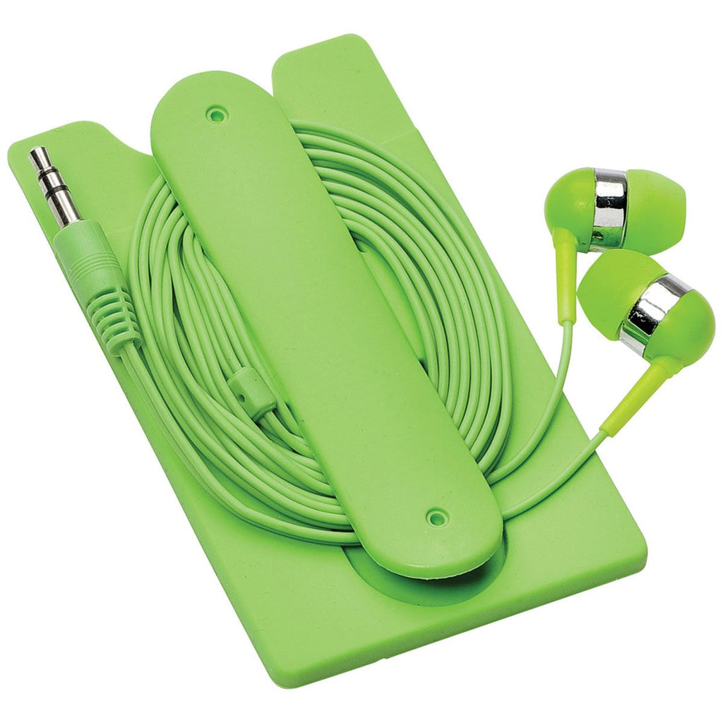 Bullet Lime Green Silicone Card Wallet and Wired Earbuds
