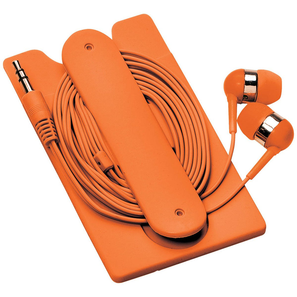 Bullet Orange Silicone Card Wallet and Wired Earbuds