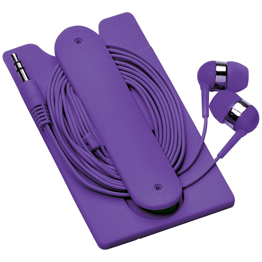 Bullet Purple Silicone Card Wallet and Wired Earbuds