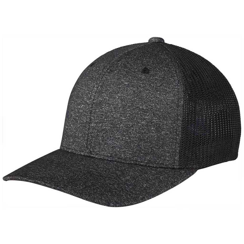 Enjoy a custom embroidered Port Authority Black/Dark Charcoal Heather Flexfit Melange Trucker Mesh Back Cap in several color and size options. Made uniquely with a poly/PU spandex jersey front and spandex mesh mid and back panels this cap has a look that is unmatched. Add your custom logo to the front to support team events or to give as employee gifts. The structured, mid-profile cap has a stretch fit so different sizes are available. Perfect to get your custom logo and name out into the world as people can literally wear your advertising. The dual color scheme stands out in the heathered options.Highlights