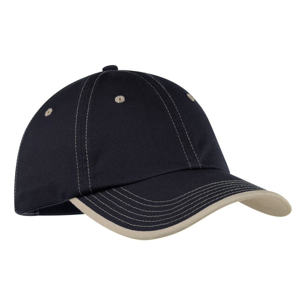 Port Authority Navy/Light Sand Vintage Washed Contrast Stitch Cap