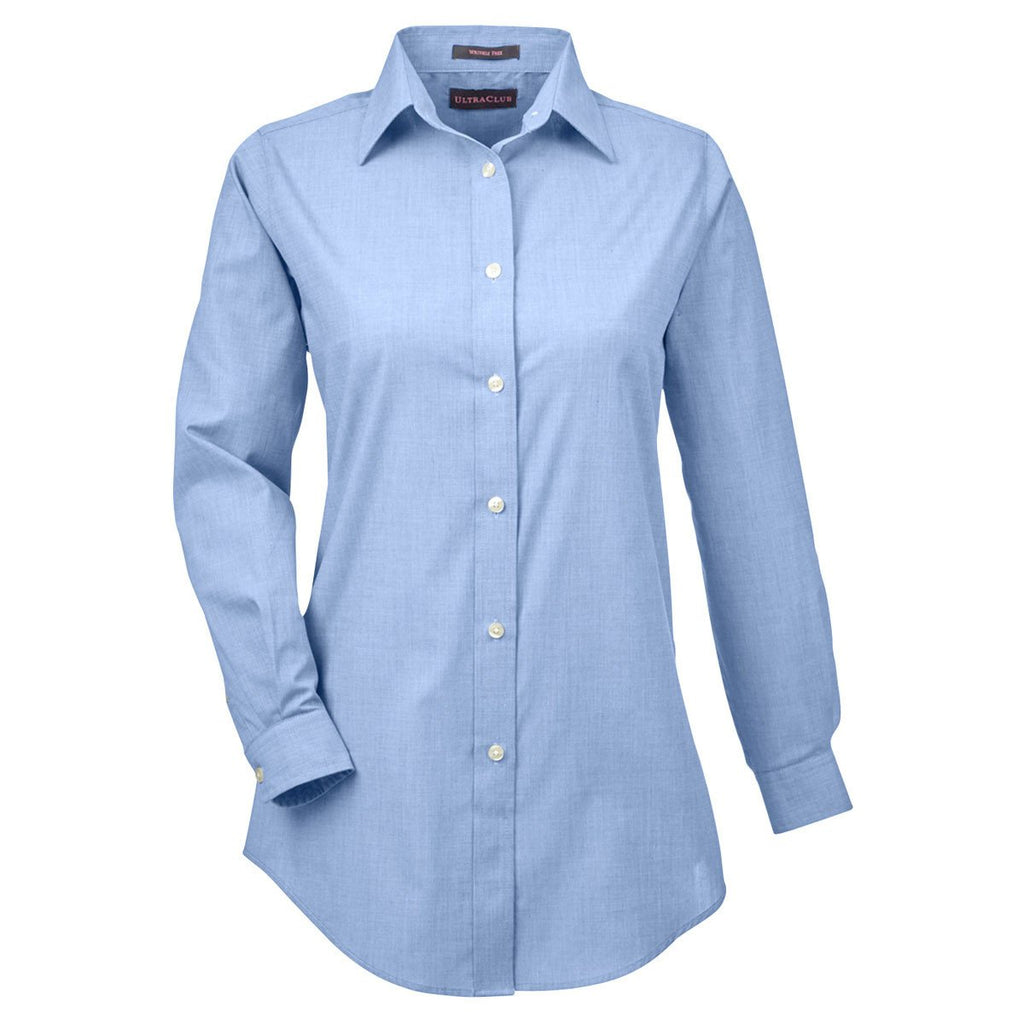UltraClub Women's Cadet Blue Wrinkle-Resistant End-on-End