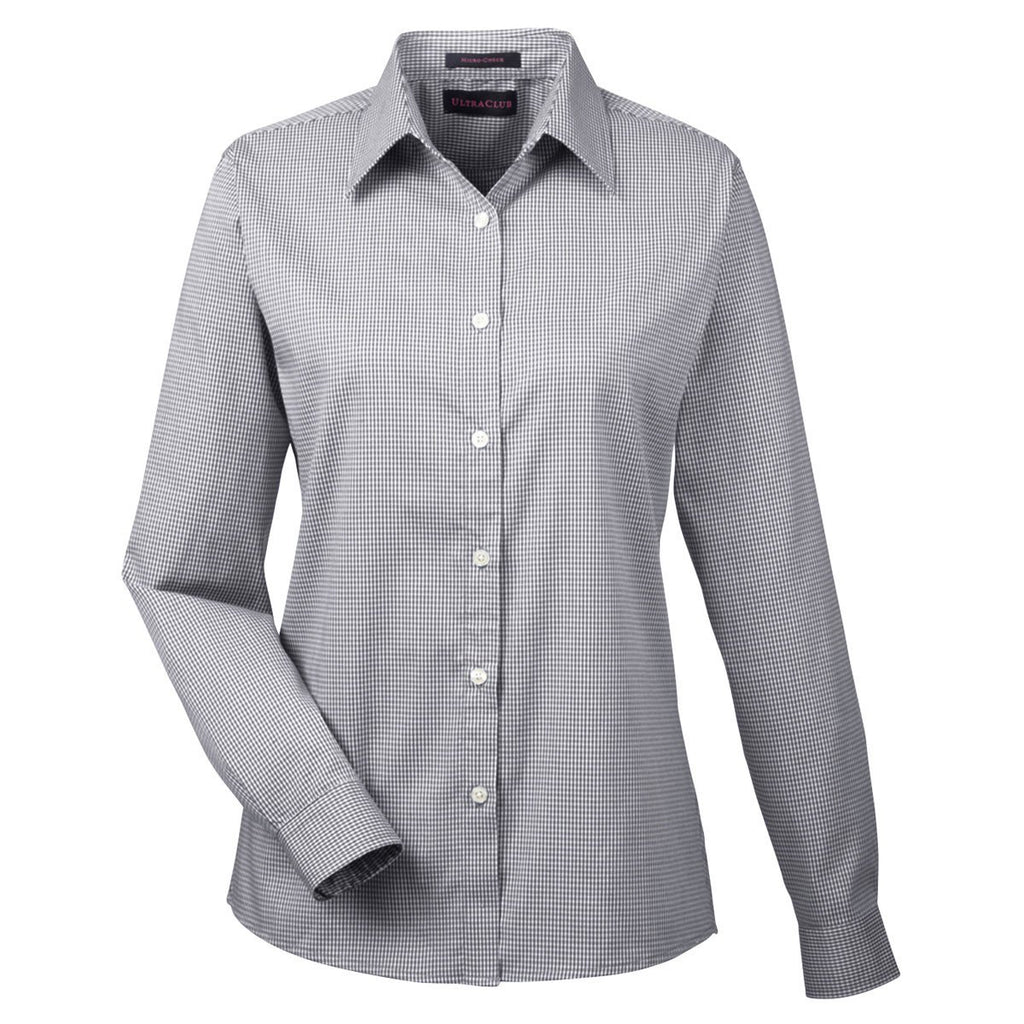 UltraClub Women's Black Yarn-Dyed Micro-Check Woven