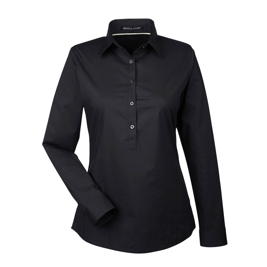 Devon & Jones Women's Black Perfect Fit Half-placket Tunic Top