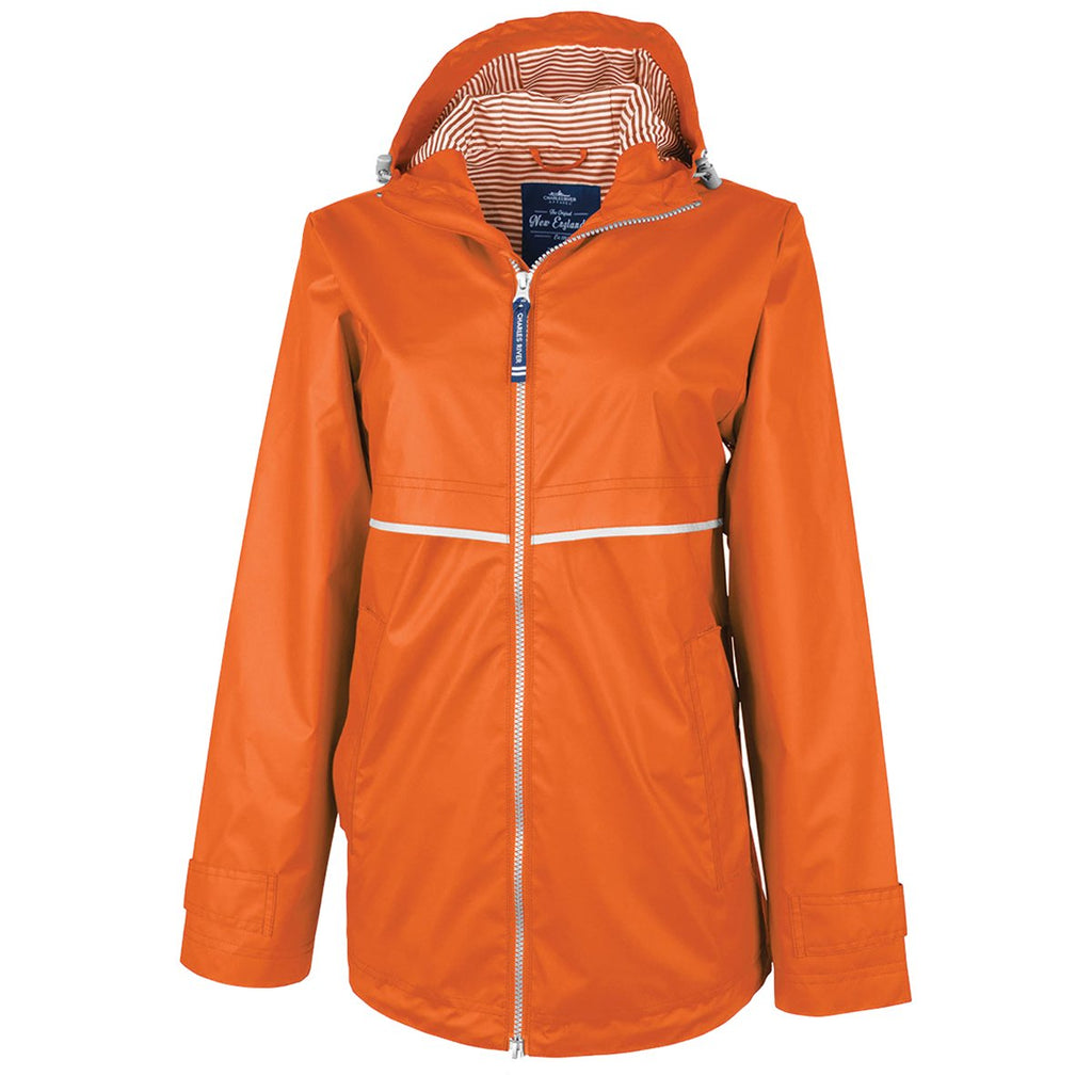 Charles River Women's Orange/Stripe New Englander Rain Jacket with Print Lining
