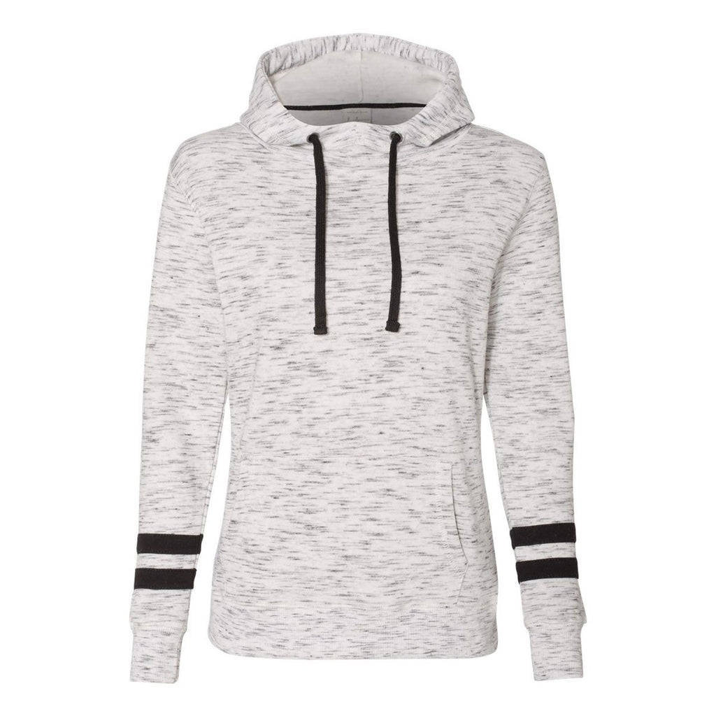 J. America Women's White/Black Melange Fleece Striped Sleeve Hooded Pullover