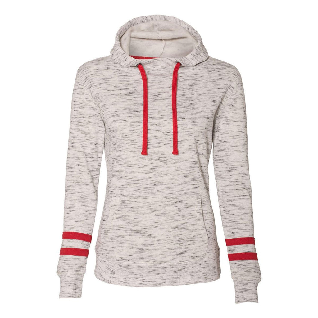 J. America Women's White/Red Melange Fleece Striped Sleeve Hooded Pullover