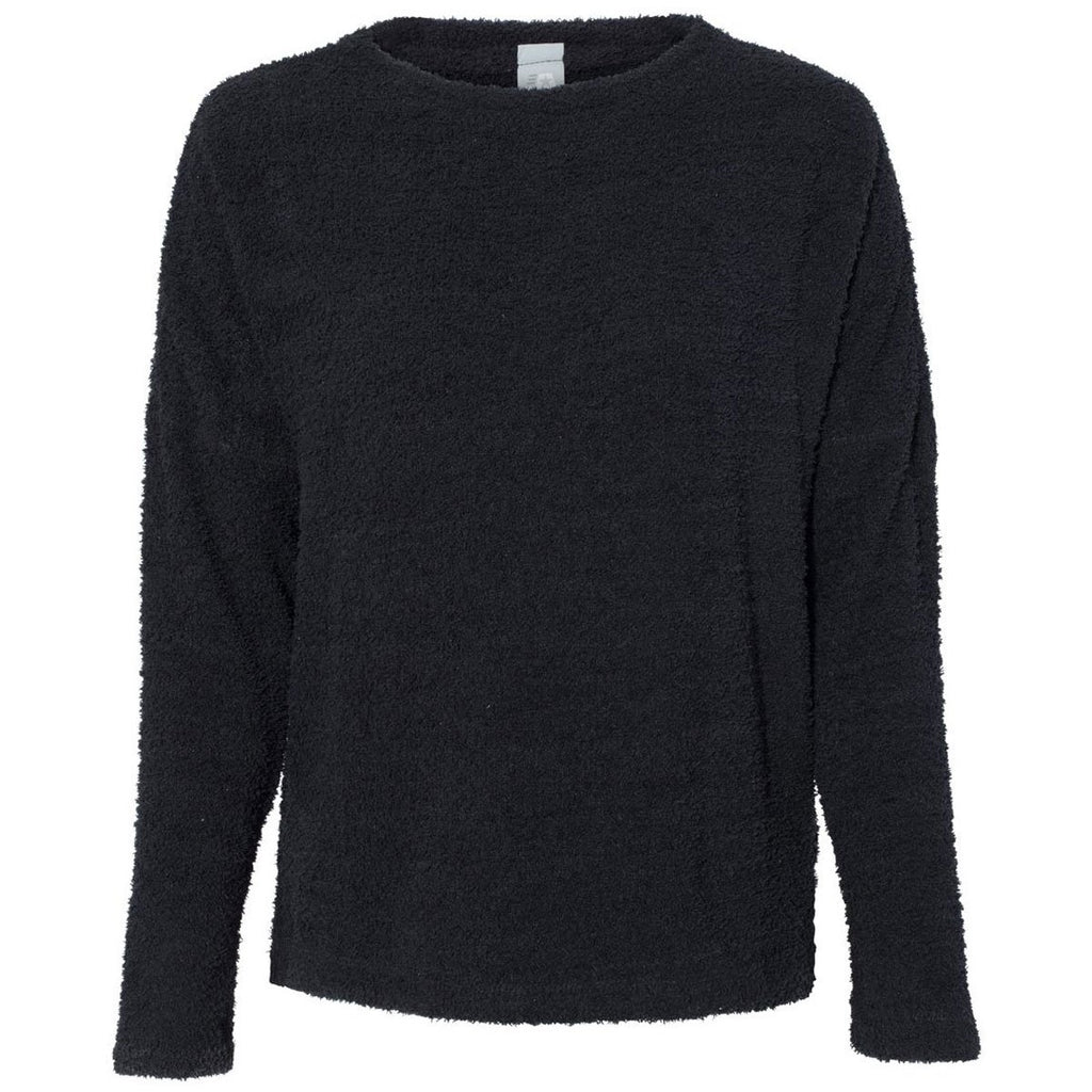J. America Women's Black Teddy Fleece Crewneck Pullover