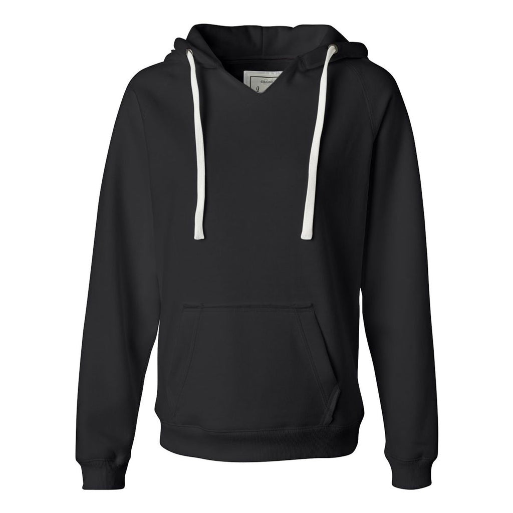 J. America Women's Black Sueded V-Neck Hooded Sweatshirt