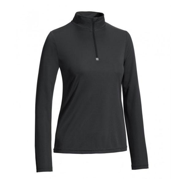 Expert Women's Black Quarter Zip Training is a full-sleeve versatile top which can be either be worn as a base-layer or as an outer layer. Crafted from 100% microfiber polyester pk maX. The performance-driven fabric wicks moisture away from the skin. Half zipper flap allows a customizable ventilation and fit. Personalize workout routine with this customizable winter top for women. Create a head-turning activewear shirt sporting your company's logo to give long-term exposure to your brand's identity.Highlights