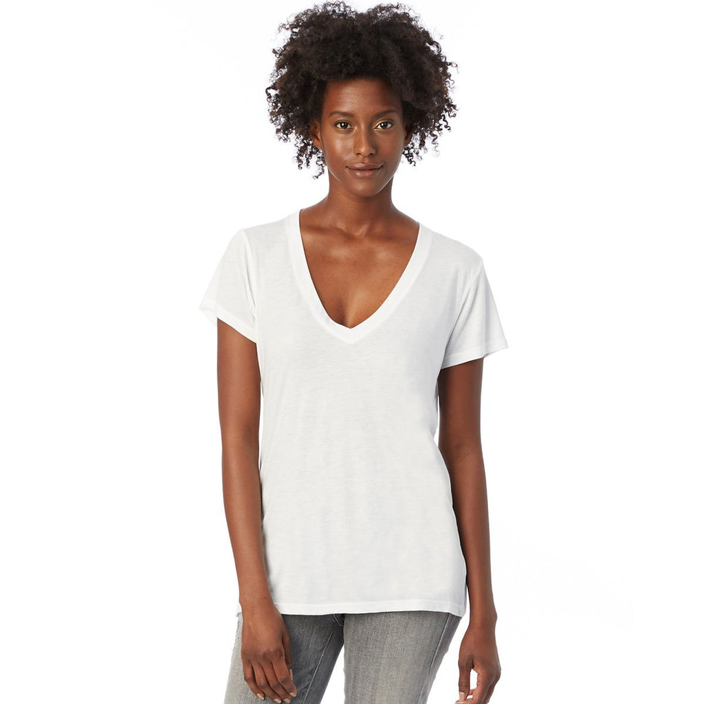 Alternative Apparel Women's White Melange Burnout Slinky V-Neck T-Shirt