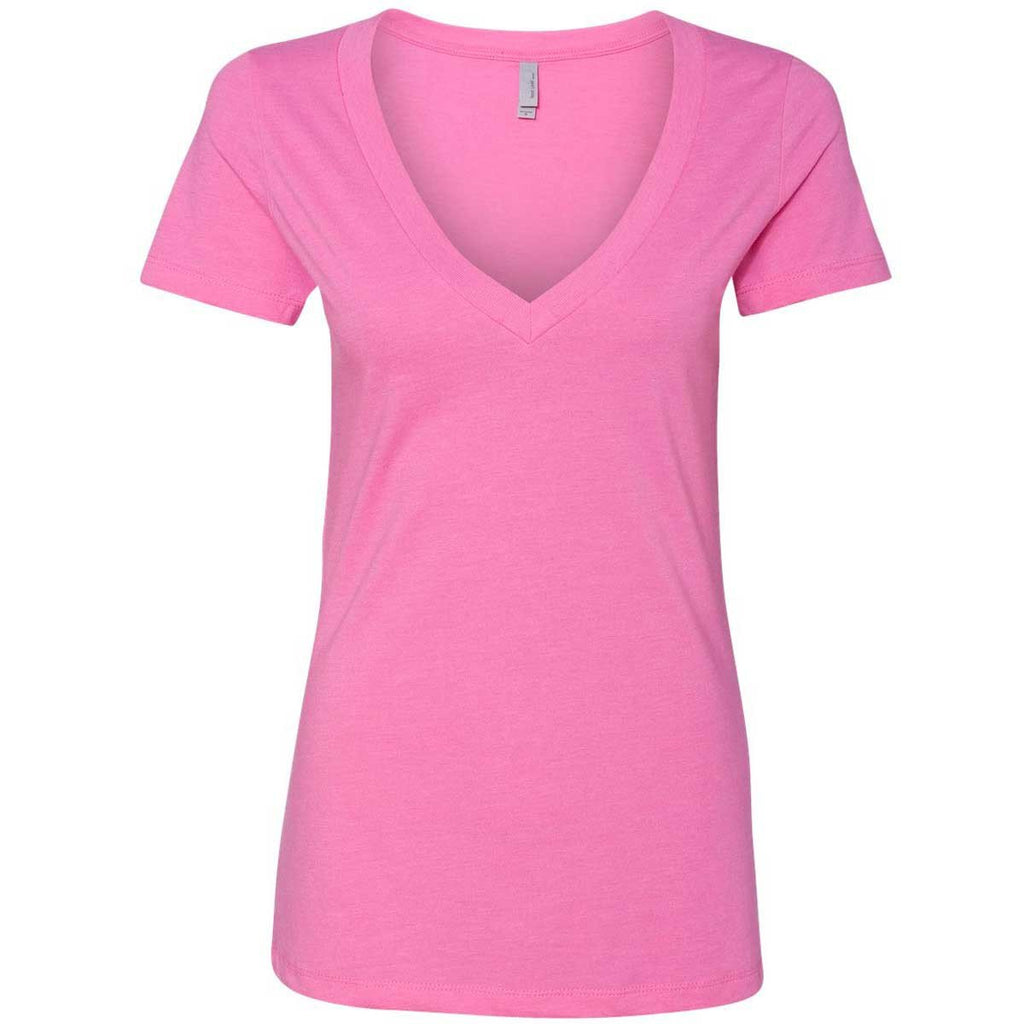 Next Level Women's Hot Pink CVC Deep V Tee