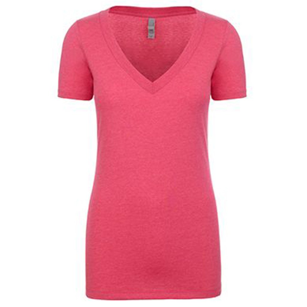 Adding another plain ol' crewneck tee to the outfit isn't always exciting. If you've ever agreed with that statement, perhaps it's time to switch to this Next Level Women's Raspberry CVC Deep V Tee. Not only does it offer a degree of style that you can't get with the usual tee, but it has all the comfort and carefree attitude of a crewneck. If only all shirts could give you an added layer of interest in your outfit without feeling like they added another layer of discomfort as well. But thankfully, v-necks like this can rescue a drab wardrobe in a hurry. With Merchology, you can add a custom logo to take this v-neck to the next level.Setup includes free 2-color logo on 1 location. If you need more colors added to your logo, or another imprint location, please inquire with a Merchologist.
